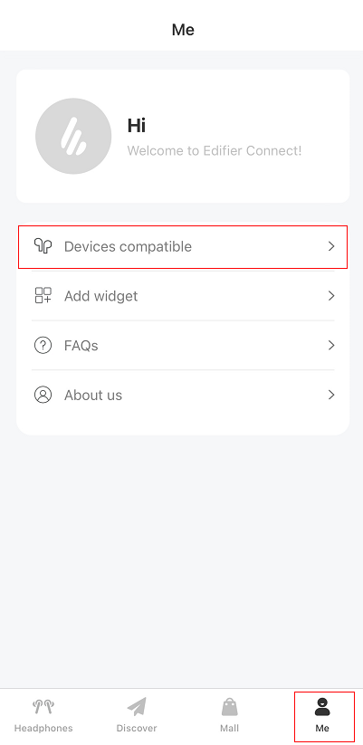 (1)Please make sure that your headphones are connected to the audio source device where the Edifier Connect App is installed, and that your headphones available to connect with Edifier Connect App. You can check the list of supported devices for the app in Edifier Connect App - Me - Devices Compatible.